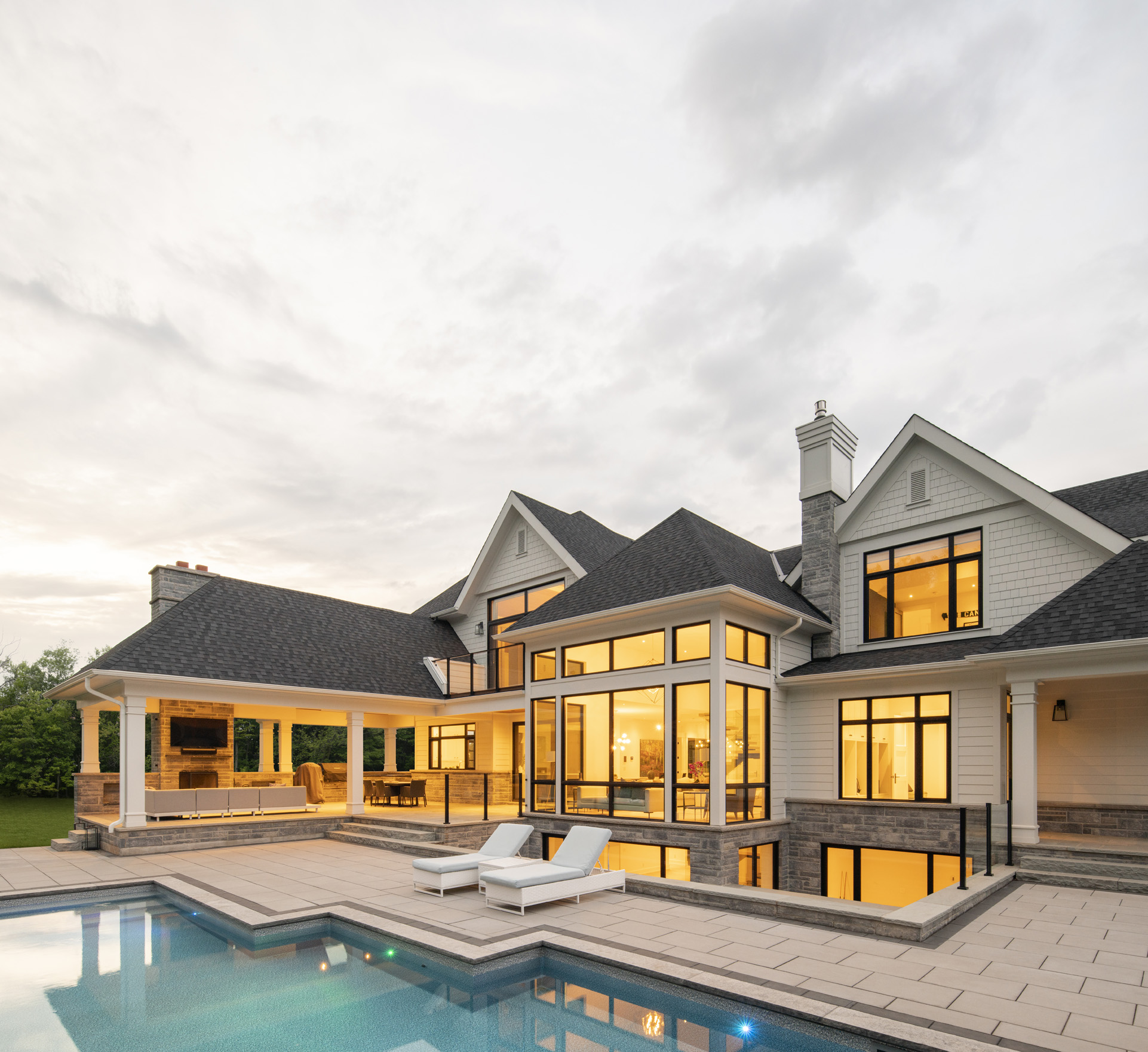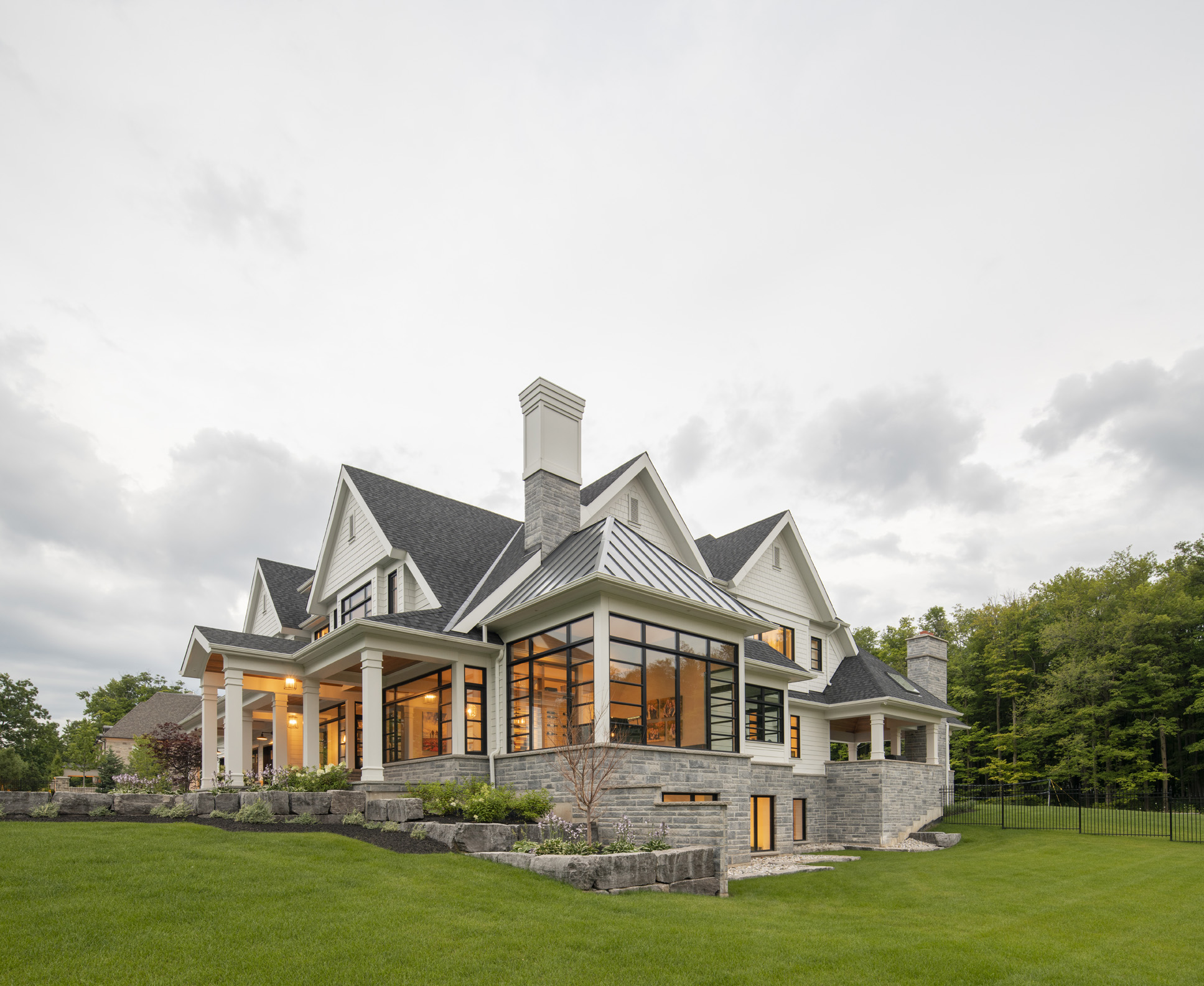 Η εξοχική κατοικία έχει μια εντυπωσιακή αρχιτεκτονική δομή, με πολλά μεγάλα ανοίγματα που ακολουθούν έναν ιδιαίτερο αρχιτεκτονικό ρυθμό. Η απόλυτη αρμονία με το λευκό χρώμα που κυριαρχεί τόσο στο εσωτερικό όσο και στο εξωτερικό του κτιρίου, δημιουργεί μια εκλεπτυσμένη αισθητική. Τα προηγμένα συστήματα συρόμενων και παραθύρων παρέχουν μια κομψή λύση στις ανάγκες της αρχιτεκτονικής σύνθεσης, διασφαλίζοντας την άφθονη φυσική φωτεινότητα και προσφέροντας υψηλή εξοικονόμηση ενέργειας. Επιπλέον, εξασφαλίζουν υψηλά επίπεδα ασφάλειας και μείωσης του θορύβου.